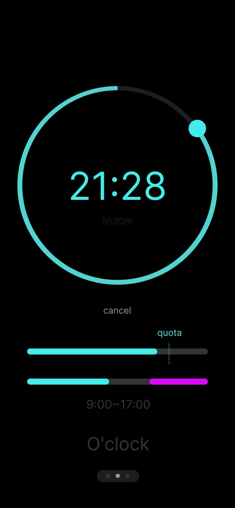 稼働時間中にタイマーが停止している時は自動的にこの画面に切り替わり、紫色のバーが加算されて「サボり」を可視化します